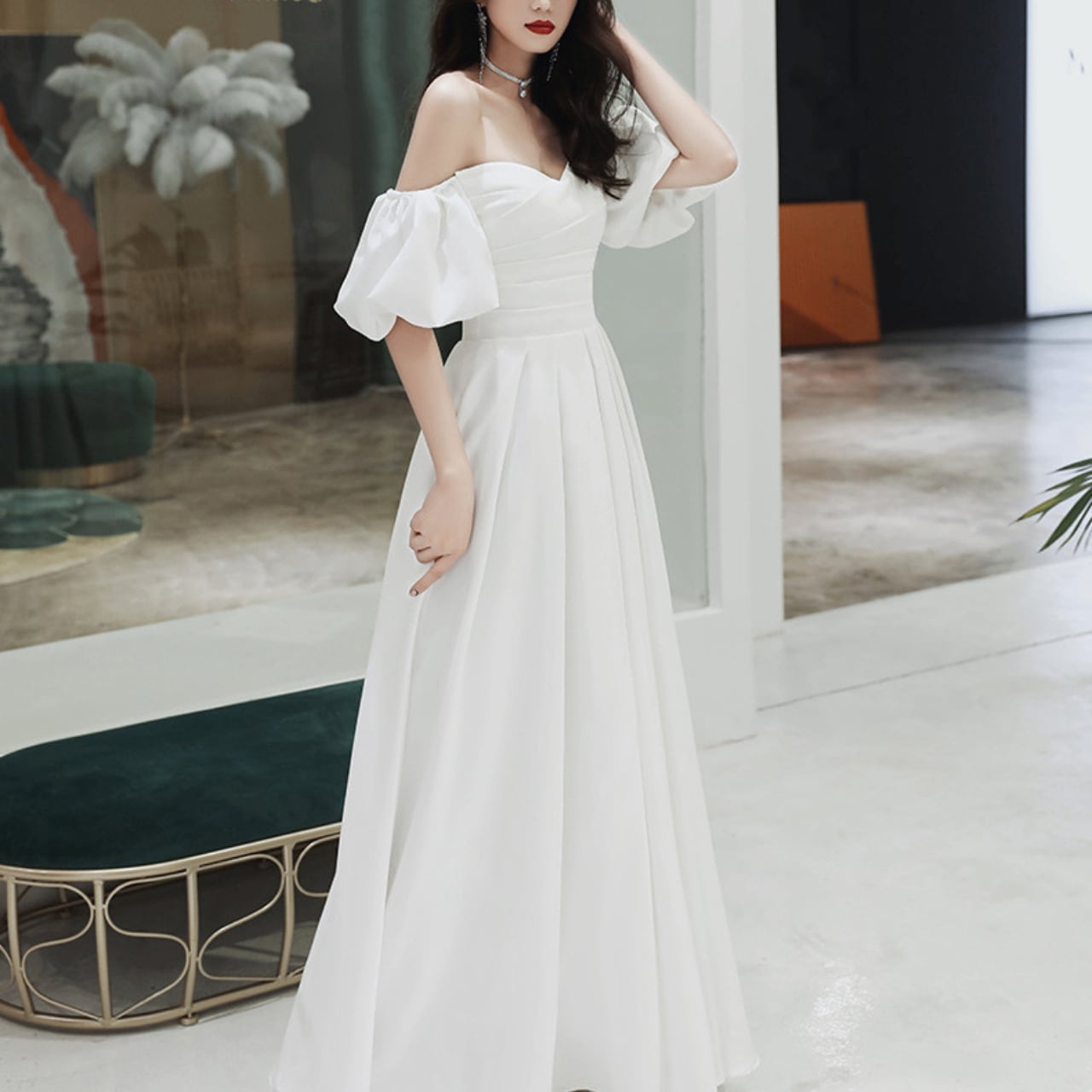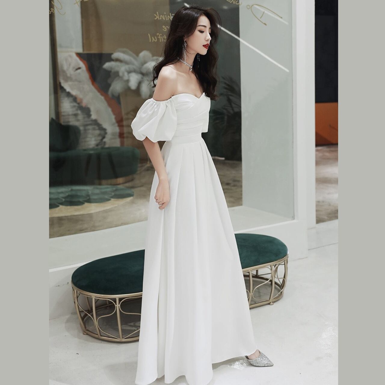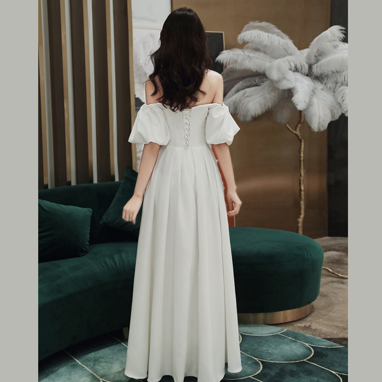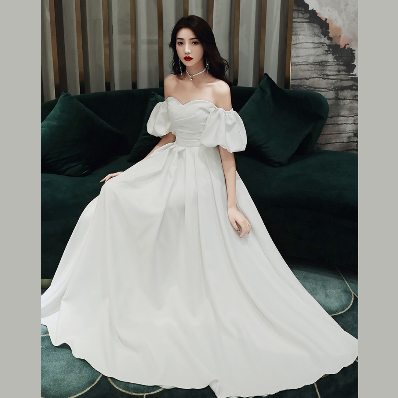 ウェディングドレス 花嫁 結婚式 前撮り 2次会 後撮り ウェディングフォト 10代 20代 30代 40代 人気 シンプル ナチュラル ロングドレス ブライダル ドレス パーティー 海外挙式 パフスリーブ オフショルダー Aライン ホワイト