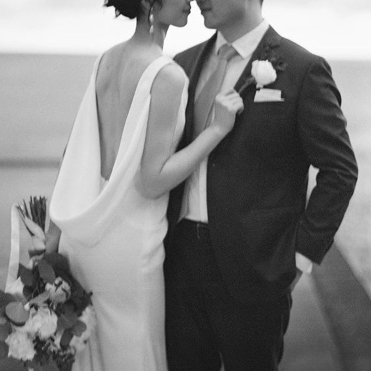 背中がざっくり空いたデザインの大人可愛いウェディングドレス✴︎