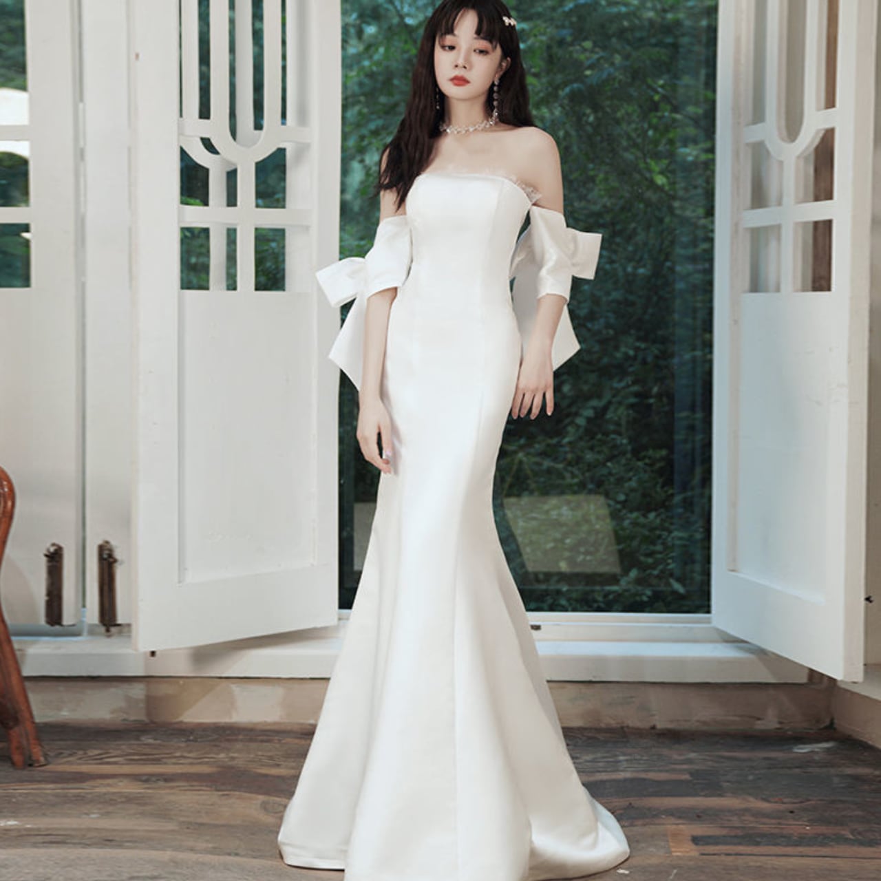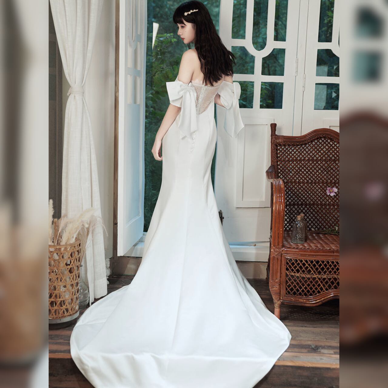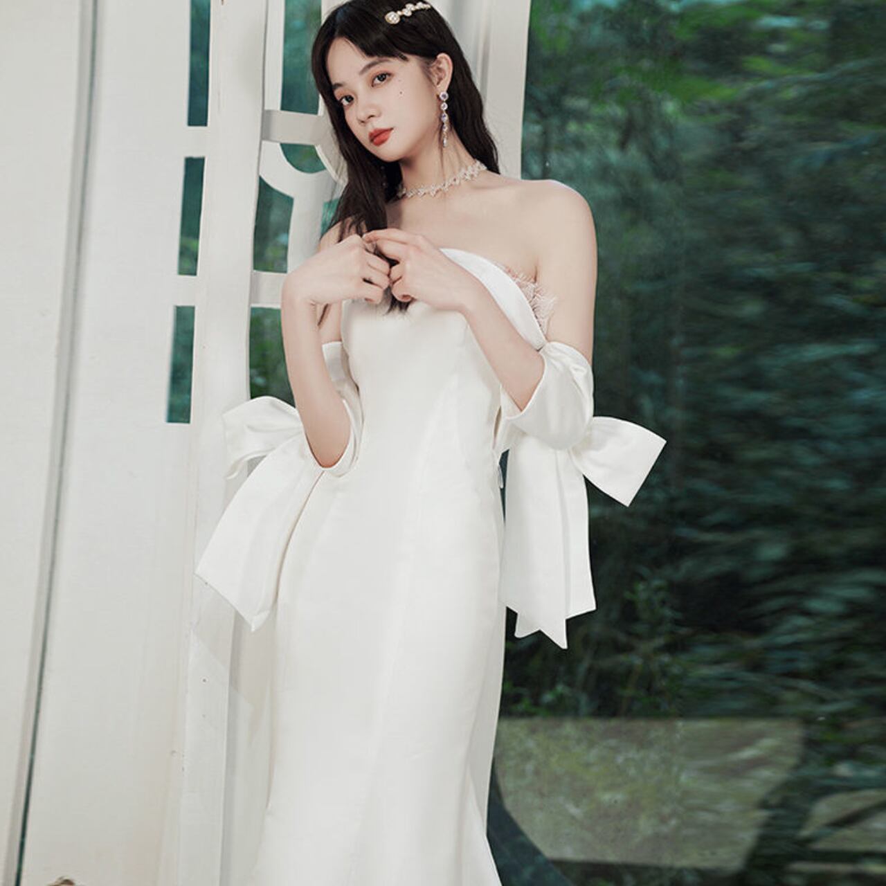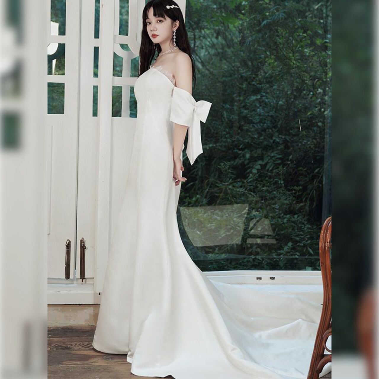ウェディングドレス 花嫁 結婚式 前撮り 2次会 後撮り ウェディングフォト 10代 20代 30代 40代 人気 シンプル ナチュラル ロングドレス ブライダル ドレス パーティー 海外挙式 ホワイト イブニングドレス リボン