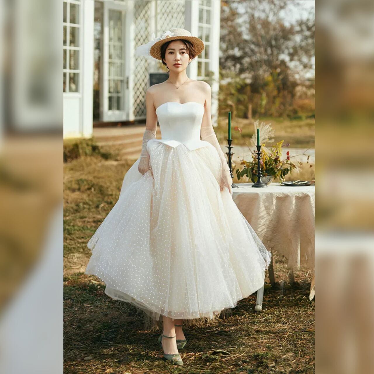 レトロ ハートカット ウェディングドレス 花嫁 結婚式 前撮り 2次会 後撮り ウェディングフォト 10代 20代 30代 40代 人気 シンプル ナチュラル ロングドレス ブライダル ドレス パーティー 海外挙式 ドレープ ホワイト チュチュ
